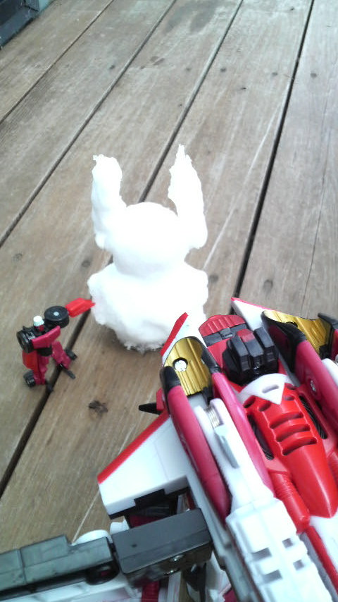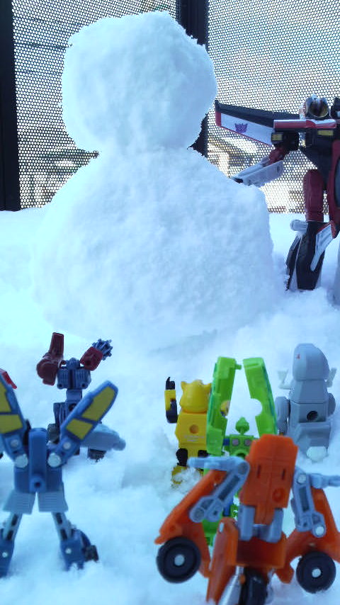 スタが作った巨大雪だるまに、マイクロン達おおはしゃぎ。